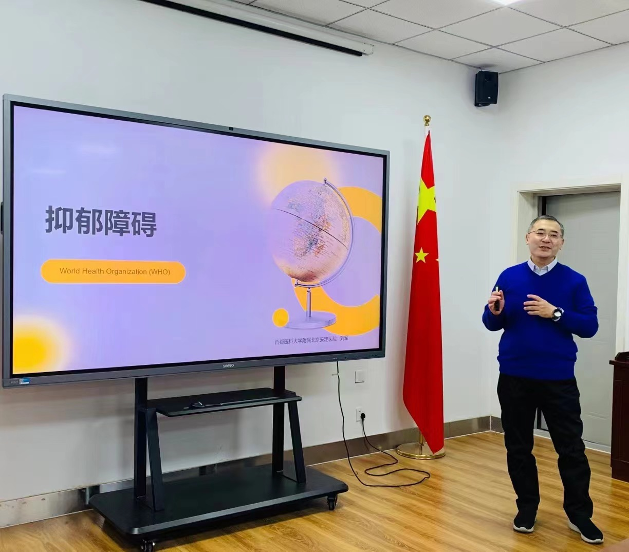 2023年10月20日上午,中国心理学会临床心理学注册工作委员会委员(伦理组)、首批中国心理学会临床心理学注册工作委员会注册督导师(D-06-043)、中国心理卫生协会首批认证督导师(XXD-2020-051)、中国社会心理学会婚姻与家庭心理学专业委员会委员、中国心理卫生协会心理治疗与咨询专委会家庭治疗学组(第三届)委员、中国心理卫生协会性心理健康专委会常委、北京心理卫生协会心理治疗与咨询委员会常务委员刘军老师应邀做客“心理健康大讲堂”,为万象城师生做了题为《抑郁障碍——世界卫生组织的应对》的学术讲座。副院长金童林主持讲座。