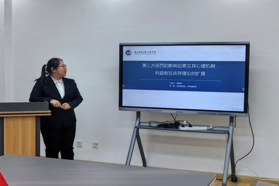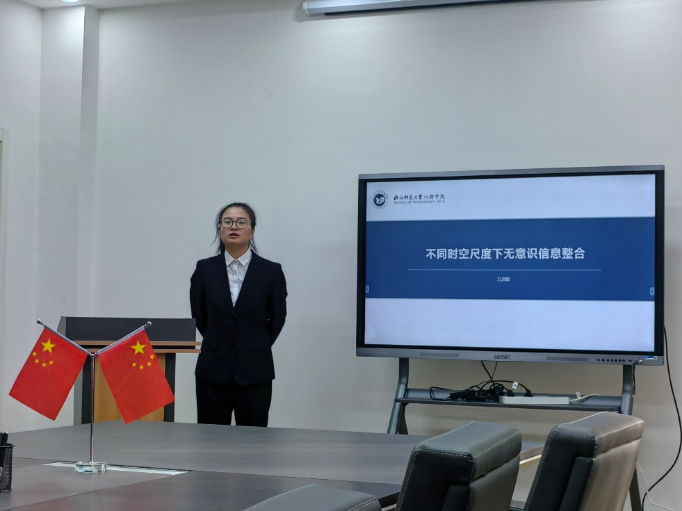 交流会上,来自浙江大学的杨西玛博士、浙江师范大学的蔺姝玮博士、万思敏博士分别作了《科研成果分享与交流》《第三方惩罚的影响因素及其心理机制:利益相互依存理论的扩展》《不同时空尺度下无意识信息整合》的学术报告。在互动环节中,三位青年博士与万象城博士生展开了热烈讨论,并就在场博士生的提问进行了详细解答,现场气氛融洽和谐。会议最后,金童林副院长对三位青年博士的精彩报告作了简单总结,讲座在热烈的掌声中圆满结束。