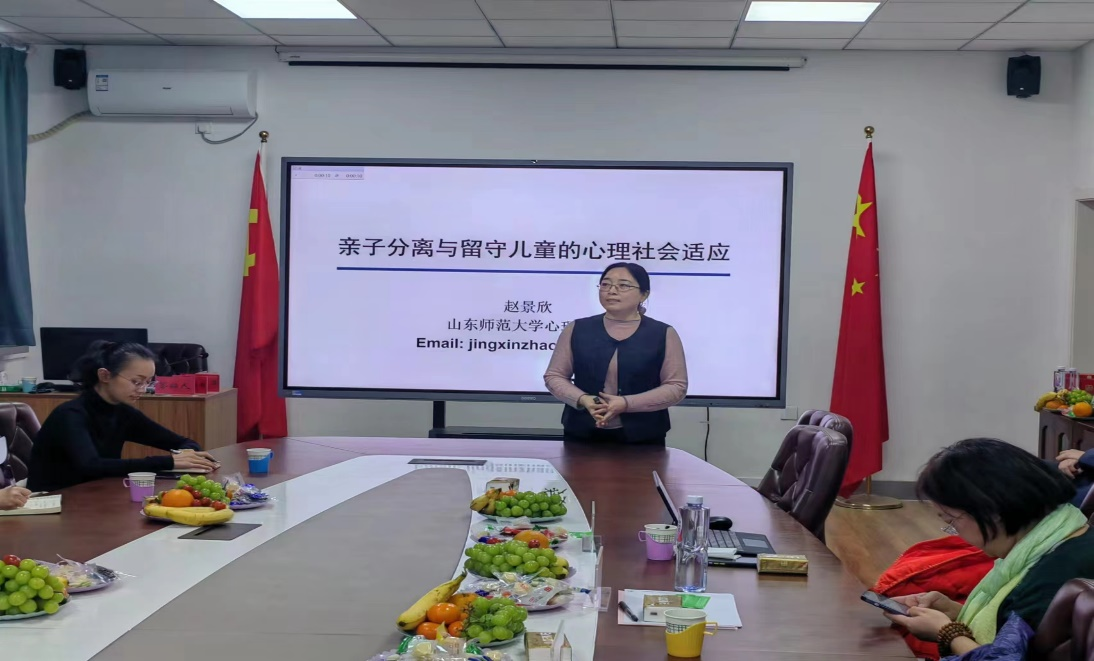 教育部基础教育教学质量评价专委会委员、中国心理学会教学工作委员会委员、山东省本科教育教学指导委员会秘书长、山东省泰山学者青年专家、山东师范大学万象城娱乐awc线路党委书记赵景欣教授作题为《亲子分离与留守儿童的心理社会适应》的学术报告,赵景欣教授从留守儿童的群体特征和家庭结构引入,阐述了亲子分离与留守儿童心理社会适应的宏大叙事,并重点介绍了团队关于留守儿童孤独感与偏差行为的发展轨迹研究。