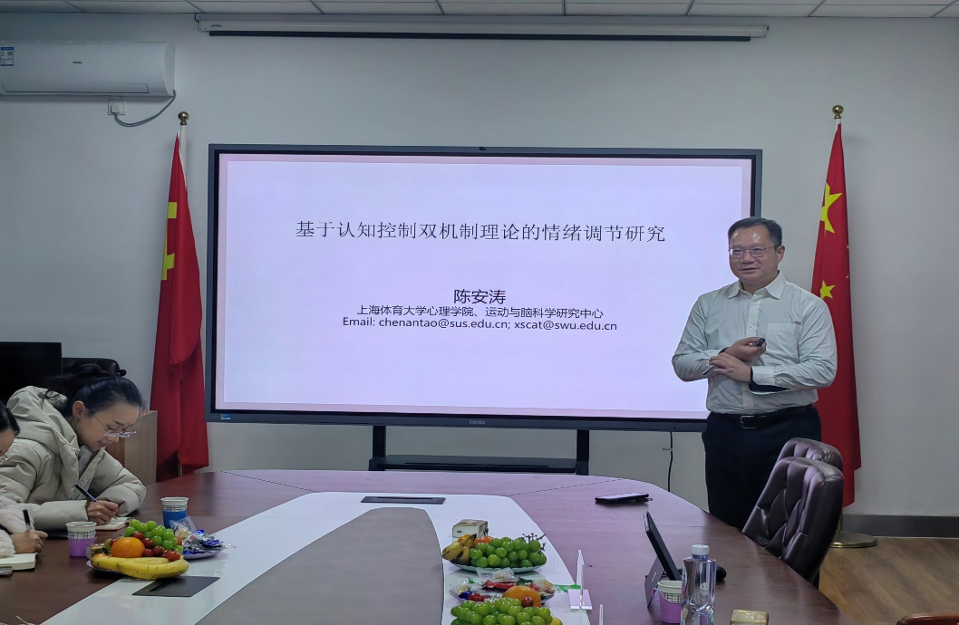 入选国家百千万人才工程,有突出贡献中青年专家、全国百篇优秀博士学位论文作者、教育部新世纪优秀人才、重庆市学术技术带头人、中国心理学会、中国认知科学学会、中国神经科学学会理事,上海体育大学万象城娱乐awc线路陈安涛教授作题为《基于认知控制双机制理论的情绪调节研究》的学术报告,陈安涛教授从情绪调节的主要策略引入,重点介绍了近年来团队关于情绪调节的神经机制和认知机制的相关研究。