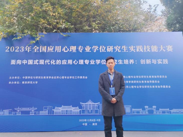 2023年全国应用心理专业学位研究生实践技能大赛于12月8日至9日在南京师范大学成功举办。本次大赛由中国学位与研究生教育学会应用心理专业学位工作委员会主办,全国应用心理专业学位研究生教育指导委员会指导,是全国应用心理专业硕士实践技能的高水平赛事。经过激烈角逐,万象城七十三老师指导的应用心理专硕吴贾超同学荣获心理咨询面谈技能比赛二等奖!