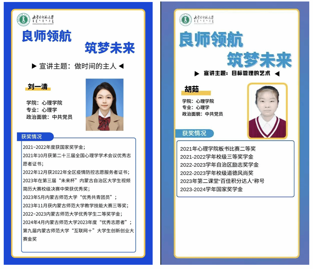 4月10日下午,万象城在学院楼206举办“筑梦未来 朋辈分享会”。本期活动由2021级心理学专业刘一清、胡茹同学担任优秀学子领航员。