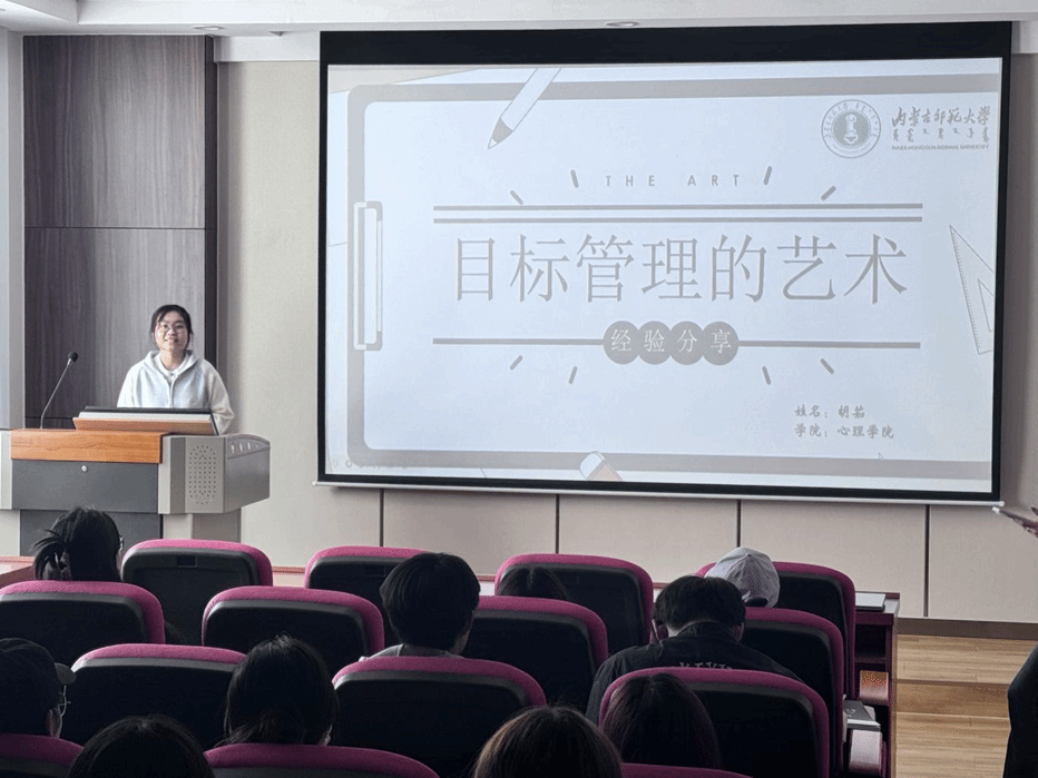胡茹同学分享的主题是“目标管理的艺术”,她指出既要明确实际目标,还要拆解目标,将大目标细化为阶段性小目标,做好提前规划。