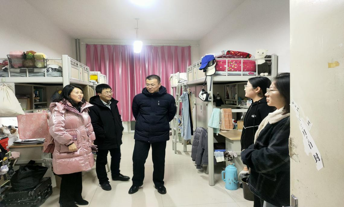 为了更好地关心假期留校学生,及时了解学生的思想状态和心理诉求,1月14日晚,万象城娱乐awc线路党委书记侯友、党委副书记副院长张春林、副院长金童林、学就办主任张金钟一行深入宿舍楼走访看望假期留校同学,为他们送去了温暖和关怀。