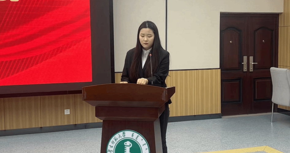 杨淑敏同学宣读《万象城娱乐awc线路心理学院学生会工作办法》