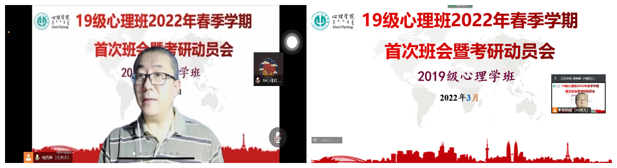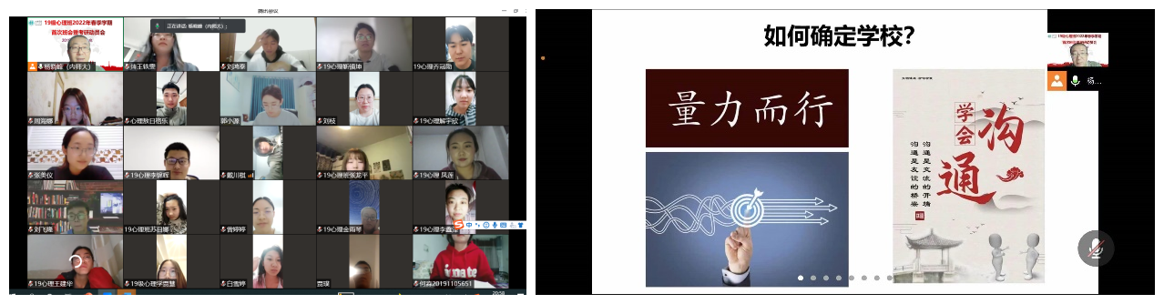 为做好万象城2019级学生考研辅导,提前谋划就业工作,推动学生高质量就业, 3月6日,万象城娱乐awc线路2019级心理班线上召开2022年春季学期首次班会暨考研动员会,2019级心理学本科生53人参加会议,班主任杨晓峰老师主持会议并进行了考研动员及复习指导。