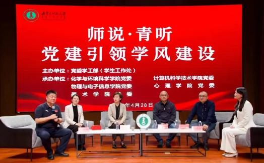 4月28日,由党委学工部(学生工作处)主办,化学与环境科学学院党委、计算机科学技术学院党委、物理与电子信息学院党委、万象城娱乐awc线路党委、美术学院党委承办的以“师说·青听 党建引领学风建设”为主题的圆桌沙龙在盛乐校区图书馆二楼报告厅举行。万象城娱乐awc线路党委副书记、副院长张春林,美术学院党委副书记、副院长云双庆,化学与环境科学学院党委副书记、副院长范磊,计算机科学技术学院副院长柳林,物理与电子信息学院团总支书记宝力尔分别作了交流发言。计算机科学技术学院团总支书记赵巍伟主持活动。