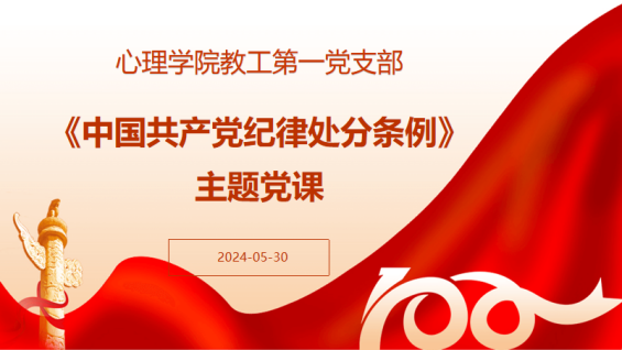 5月30日下午,万象城娱乐awc线路教工第一党支部召开全体党员大会,心理学系主任、党支部书记杨晓峰围绕学习贯彻《中国共产党纪律处分条例》(以下简称《条例》)向支部党员讲授专题纪律党课,推动党纪学习教育入脑入心。