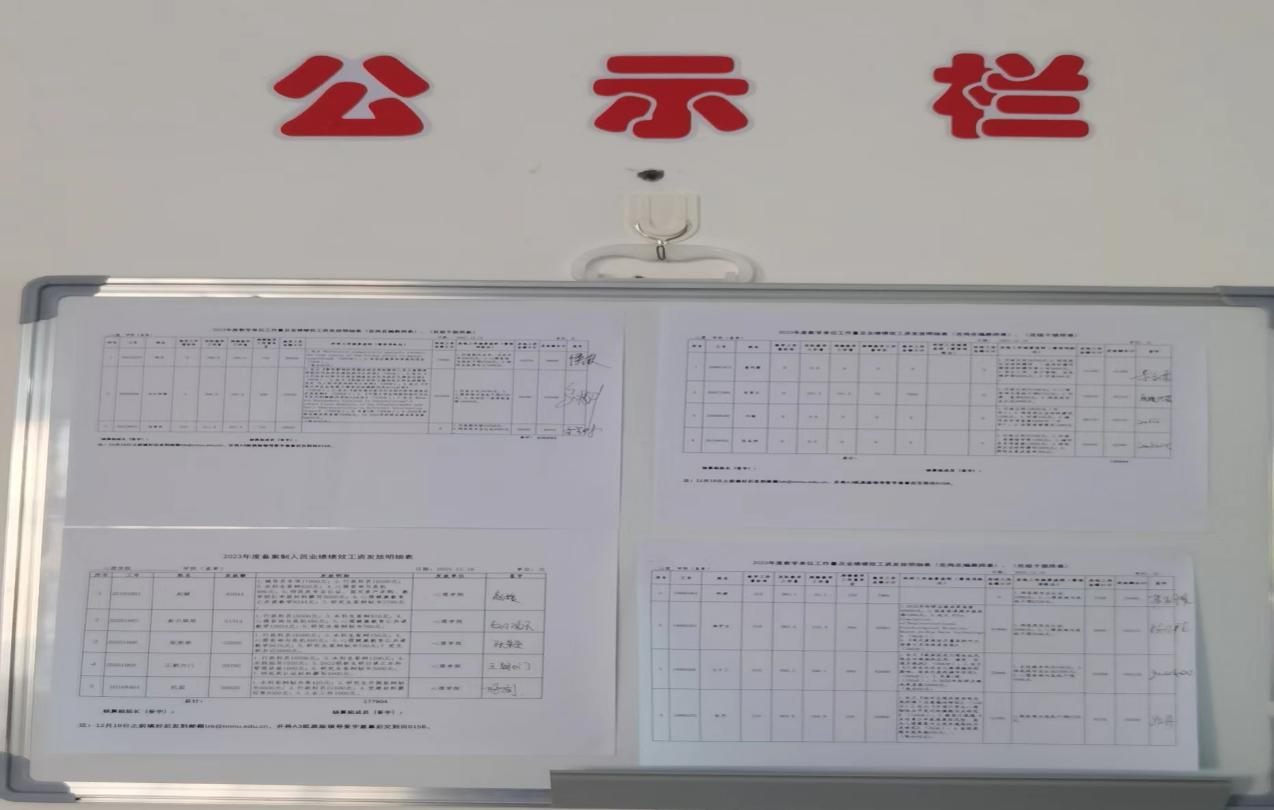 2023年12月18日,万象城娱乐awc线路绩效考核工作领导小组将业绩绩效核算结果经学院教职工签字确认后,进行了公示,并上报学校人事处。