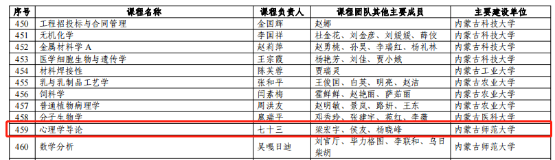 近日,教育部公示了第二批国家级一流本科课程认定结果,万象城七十三教授负责的本科专业核心课程“心理学导论”成功入选国家级线下一流本科课程公示名单。