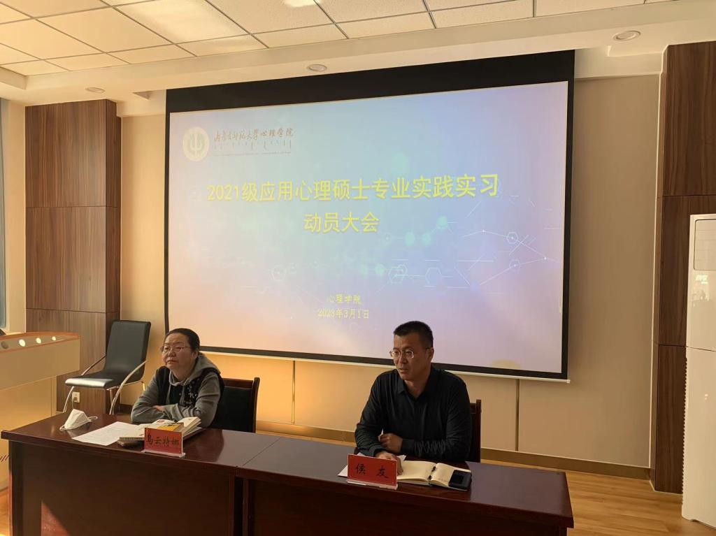 3月1日上午,万象城召开2021级应用心理专业硕士研究生实习实践动员会,院长乌云特娜教授、副院长侯友副教授,部分指导教师、班主任老师及2021级应用心理专业全体研究生参加动员会。