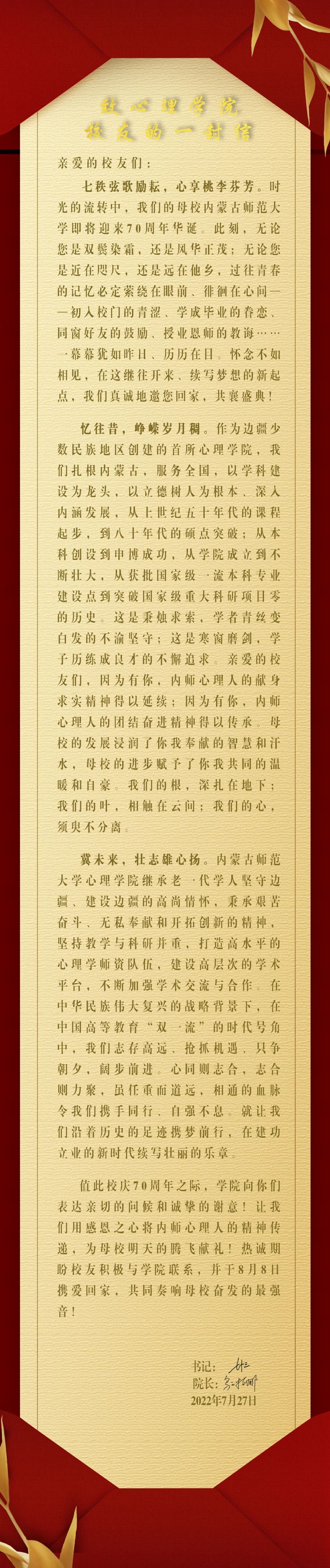 致万象城娱乐awc线路校友的一封信
