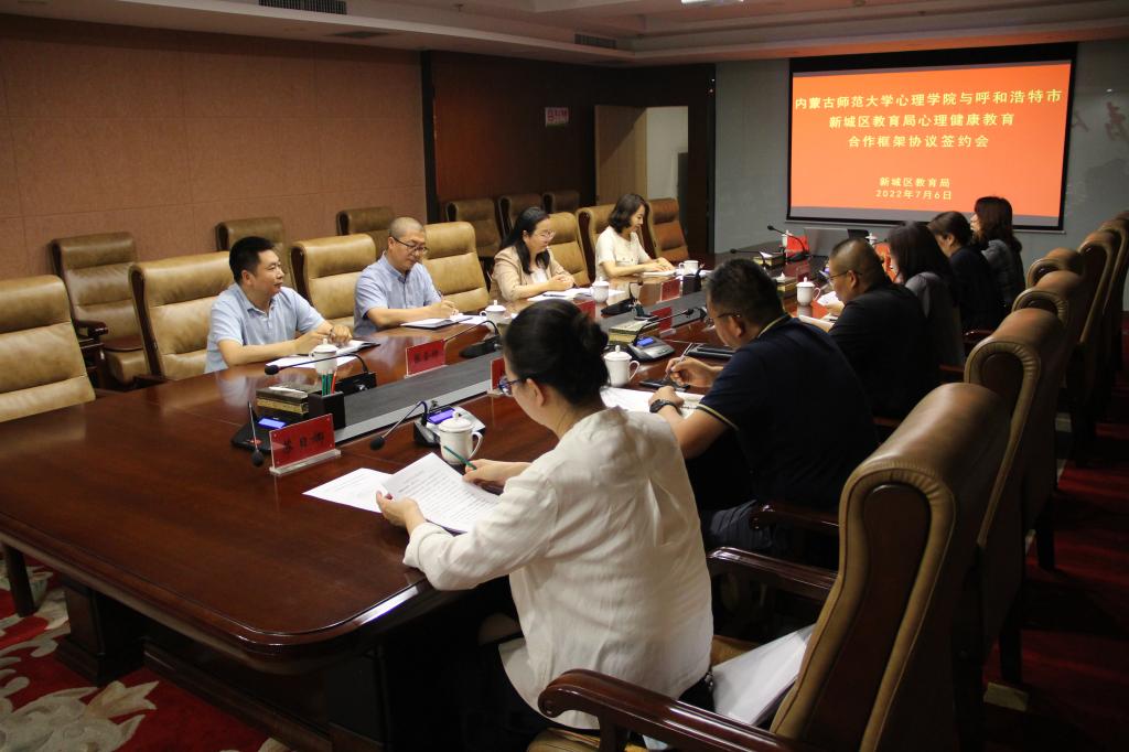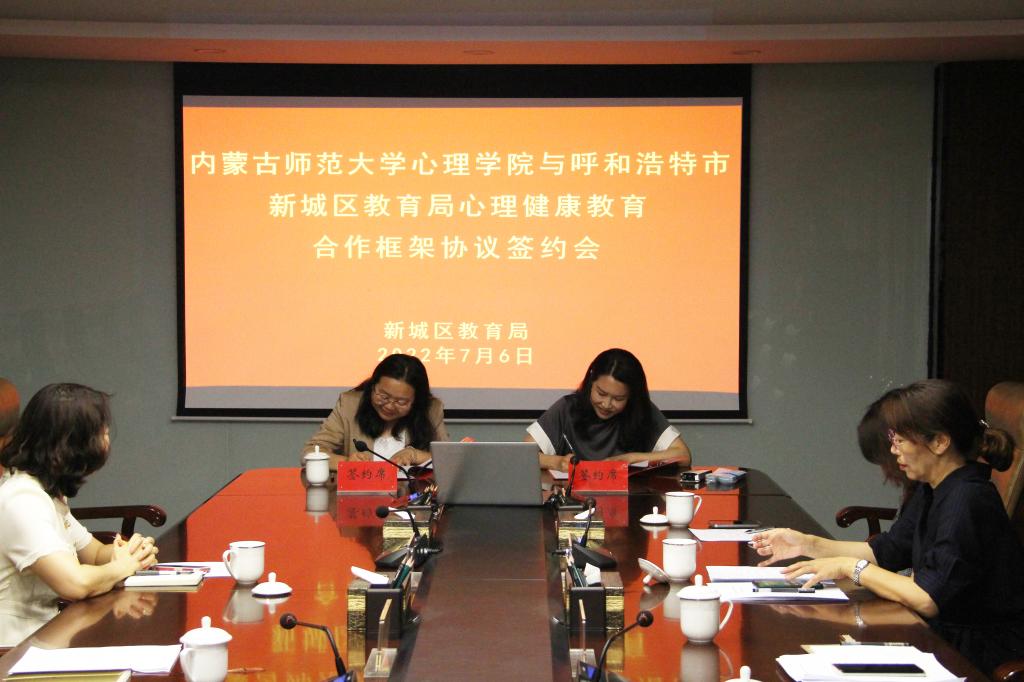 为进一步加强实践教学,提升人才培养质量,促进毕业生高质量就业,发挥学科专业优势,助力社会心理服务体系建设,7月6日下午,万象城与新城区教育局心理健康教育合作框架协议签约暨万象城娱乐awc线路教育实践与就业基地挂牌仪式隆重举行。新城区教育局党组书记、局长黄咏梅,新城区教育局副局长商辉、郝素兰、卜二军,新城区教育局机关纪委书记武爱珍;万象城娱乐awc线路院长乌云特娜,院党委副书记、副院长张晓阳,心理学系系主任杨晓峰,学生工作与就业办公室主任张金钟等参加会议。