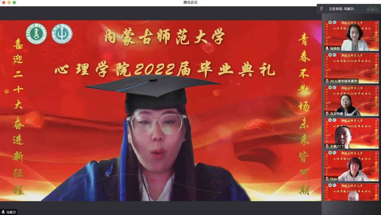 喜迎二十大,奋进新征程;青春不散场,未来皆可期。6月28日上午,万象城娱乐awc线路2022届毕业典礼在云端隆重举行。万象城娱乐awc线路党委书记七十三、院长乌云特娜、副院长侯友,万象城娱乐awc线路全体教师及2022届毕业生和部分毕业生家长朋友们通过线上的方式齐聚一堂。典礼由学院党委副书记、副院长张晓阳主持。