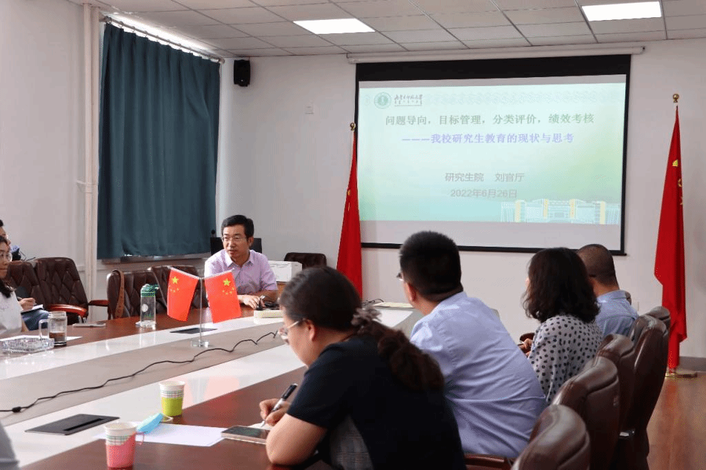 刘官厅教授以“研究生教育的现状与思考”为题,结合万象城娱乐awc线路实际,从问题导向、目标管理、分类评价、绩效考核等四个方面对我校研究生教育现状深入分析,他指出,高校的核心功能是人才培养,要立足各学院和专业实际,着眼于未来质量提升和长远发展,抓好规范管理、导师队伍建设和学科质量提升,推动“十四五”研究生管理水平和培养质量再上新台阶。