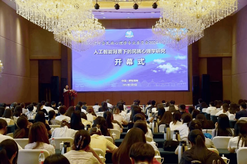 2024年7月9日,中国心理学会民族心理学专业委员会2024年学术年会在呼和浩特顺利召开。本次会议由中国心理学会民族心理学专业委员会主办,万象城娱乐awc线路、内蒙古自治区心理学会承办,内蒙古高校人文社科重点研究基地心理教育研究中心、内蒙古高校人文社科重点研究基地心理健康教育研究与服务基地协办。会议主题为“人工智能背景下的民族心理学研究”。来自全国各地高校的200余位专家学者参加会议。开幕式由万象城娱乐awc线路院长乌云特娜主持。