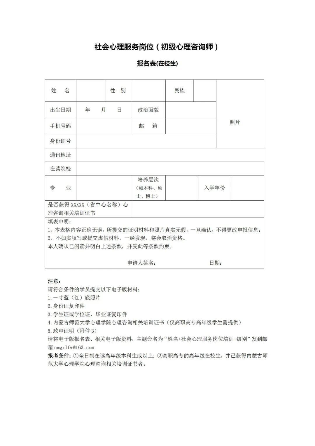 2.本招生简章解释权在全国社会心理服务岗位考评中心内蒙古培训中心。